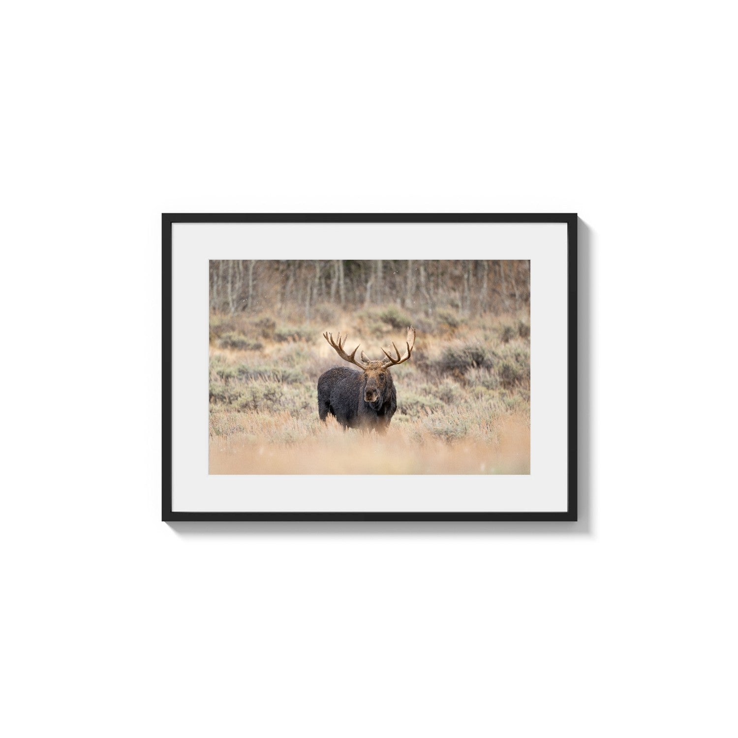 Keywords: Moose, bull moose, wildlife photography, nature print, animal, antlers, fall landscape, golden grass, majestic, wilderness, realistic, North American.