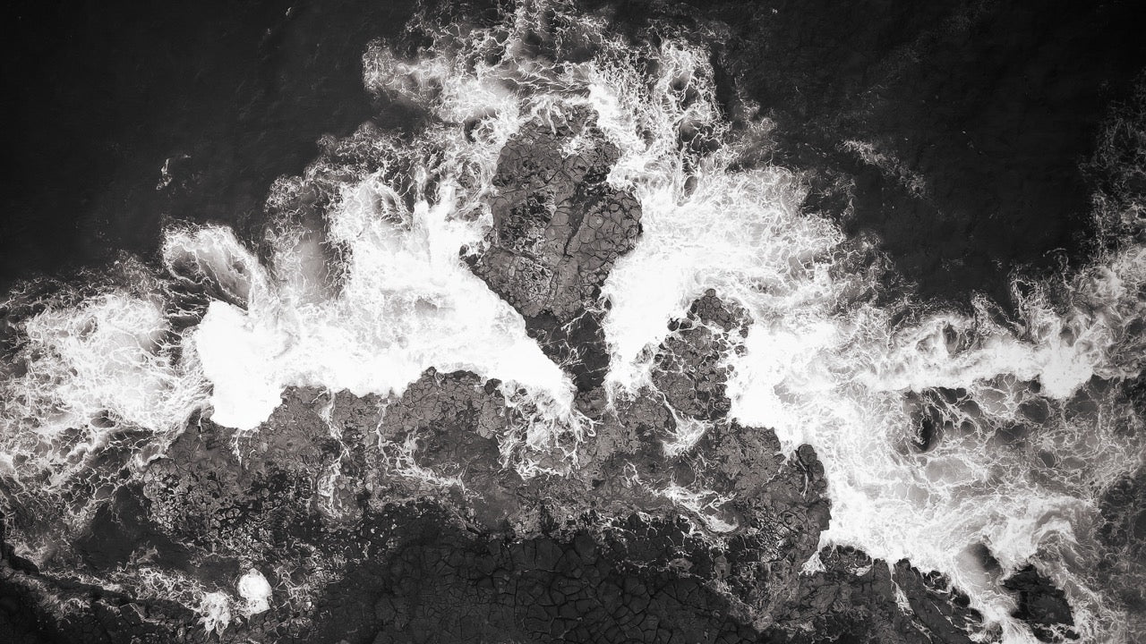 Keywords: Abstract nature photography, monochromatic, high contrast, aerial perspective, impact, turbulent, dynamic, energy, graphic, spray, texture, dramatic, natural world, geology