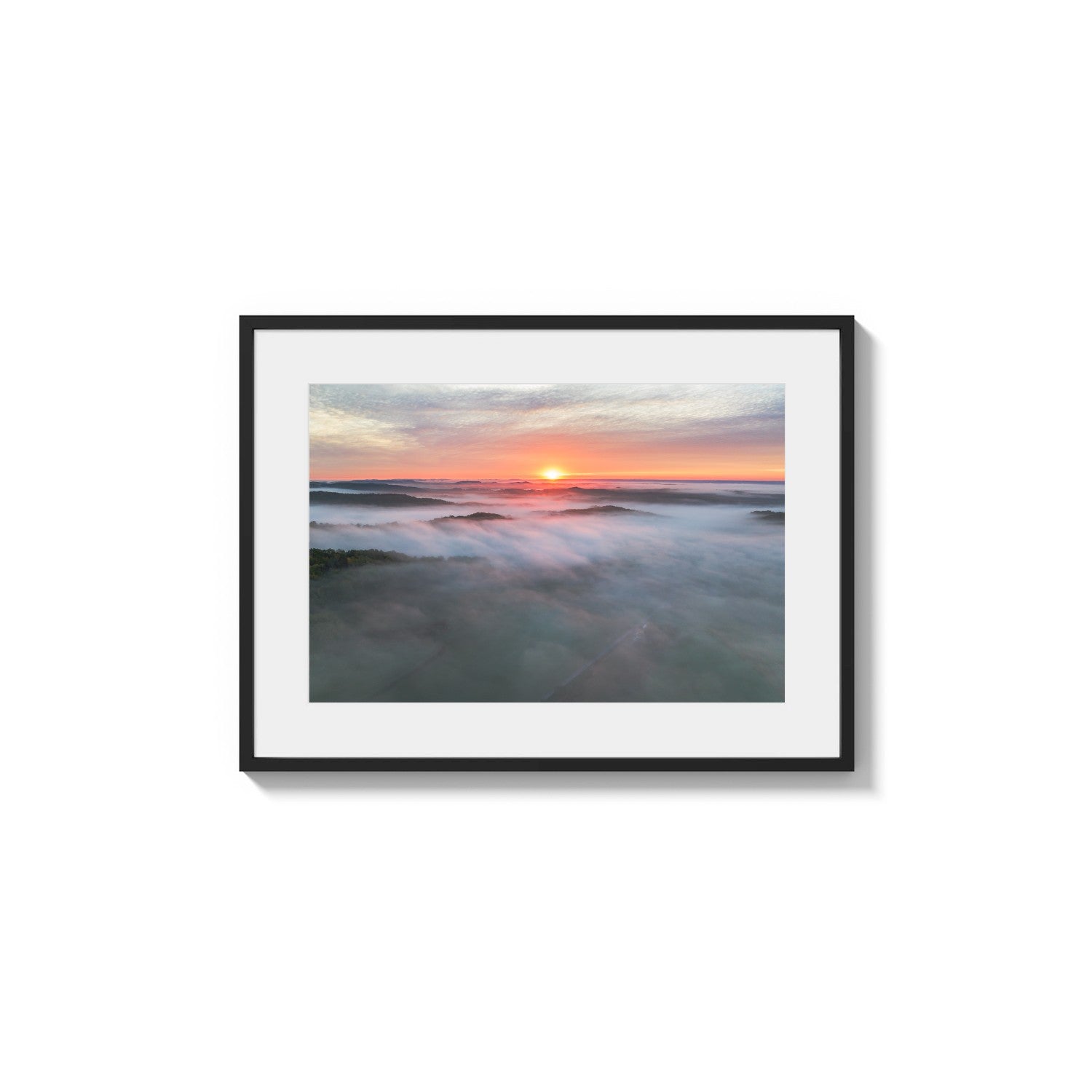 Keywords: Morning, dawn, orange, landscape, rolling, hills, vapor, clouds, dramatic, colorful, atmospheric, nature, photography, peaceful, serene, rays, diffusion, gradient, topography, rural