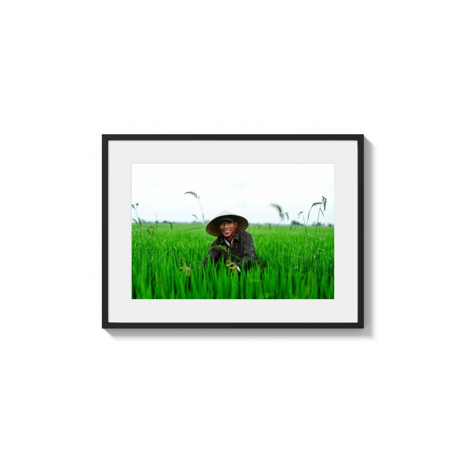 Keywords: agriculture, conical hat, Asia, portrait, labor, chartreuse, growing, culture, traditional clothing, smiling, plantation, bright colors