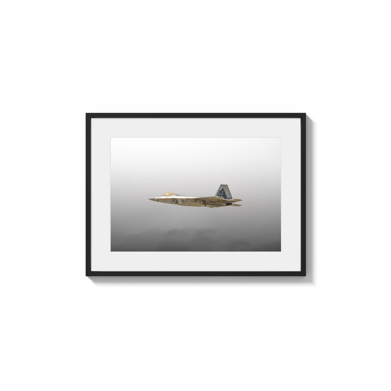 Keywords: F-22 Raptor, fighter jet, military aircraft, aviation photography, stealth, jet in flight, atmospheric, gray scale