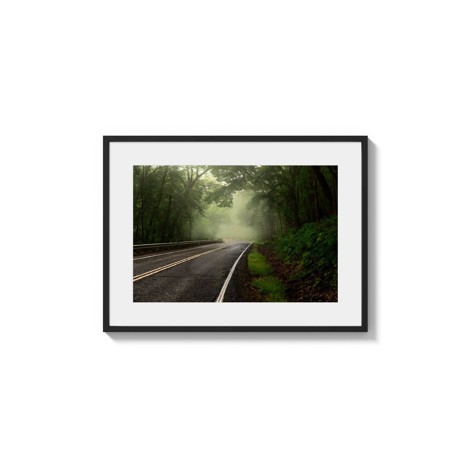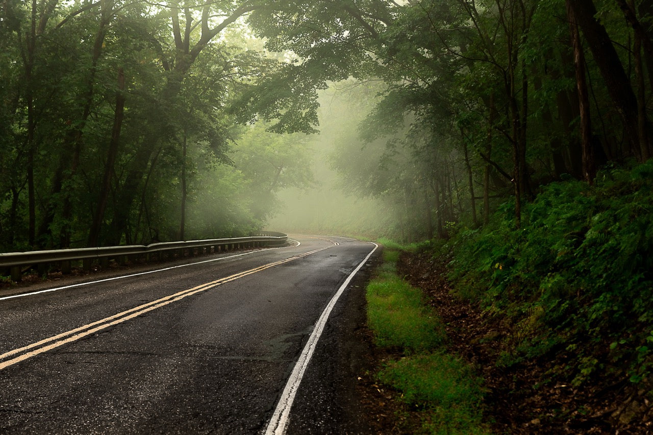 Keywords: Pavement, Dampness, Atmospheric, Curve, Guardrail, Moody, Deep Tones, Transportation, Jungle, Woods, Ethereal, Vegetation