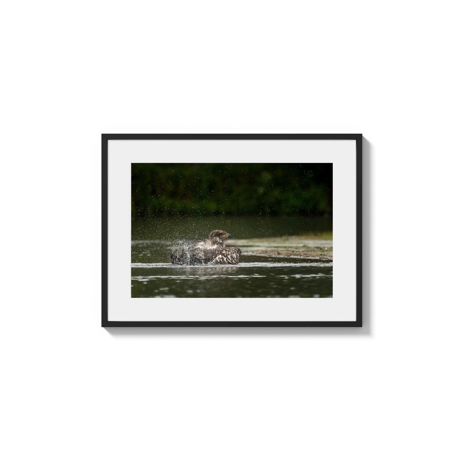 Keywords: Avian, fowl, liquid scatter, bath, bathing, photog, movement, high speed, wildlife image, murky environment, olive tones, habitat, wetland, ripples, stripes, earth tones, forest colors, aquatic fowl, blur