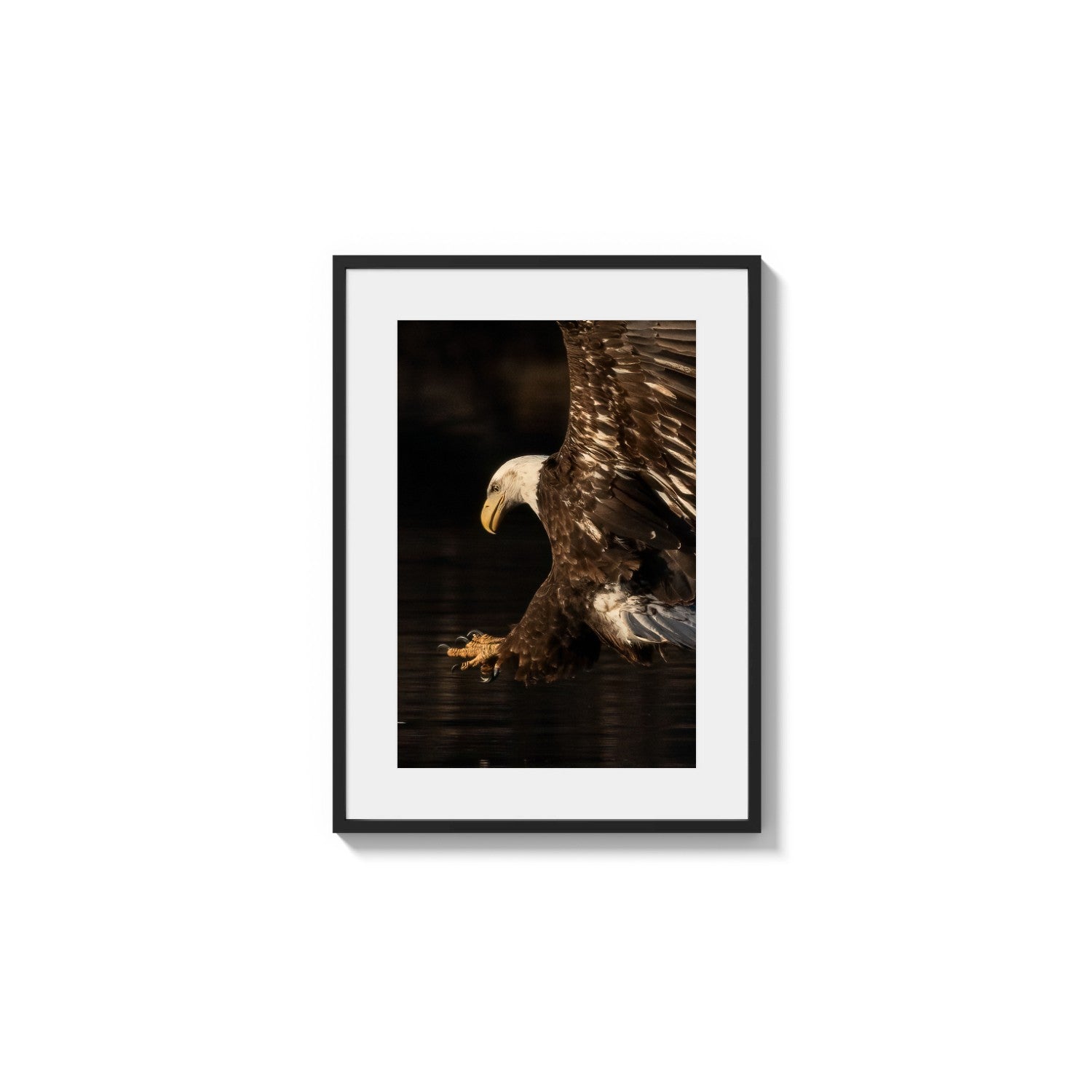 Keywords: Bald eagle, raptor, wildlife photography, bird of prey, low key, high contrast, hunting, dark nature art, dramatic flight, avian.