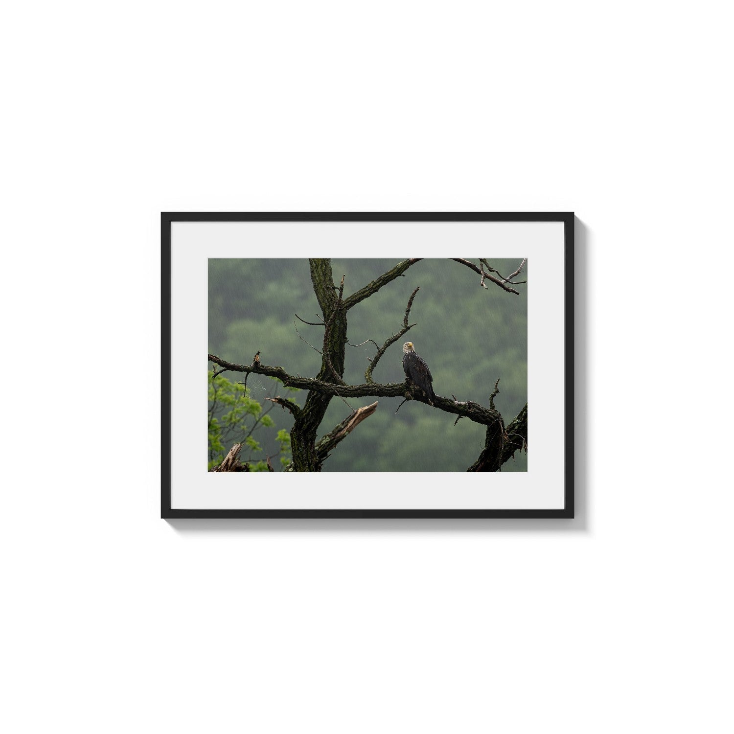 Keywords: Eagle, wildlife, photography, rain, striking, treeline, avian, ornithology, wet, survival, nature, moody, tree, inclement weather, limbs, grey, green