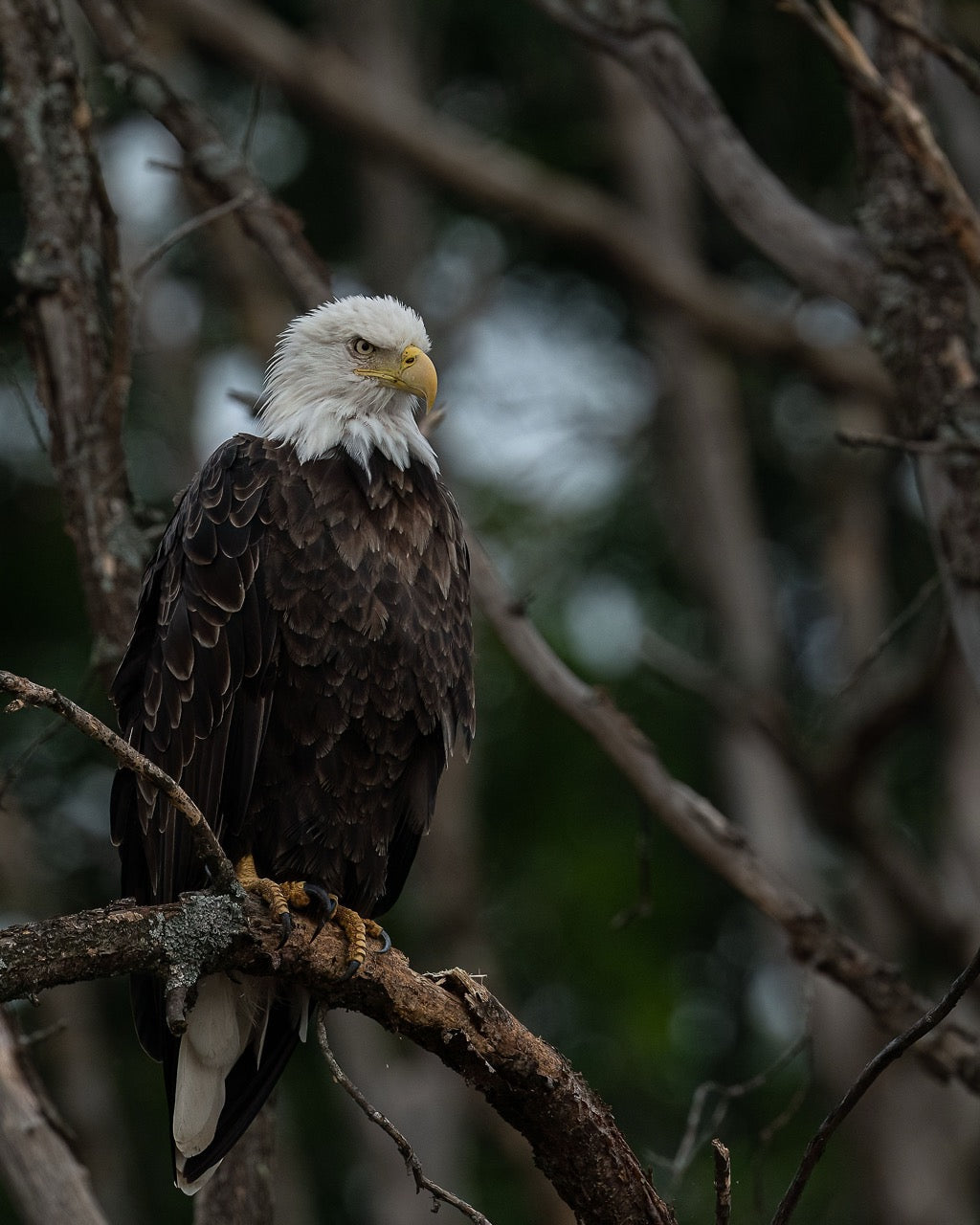 Keywords: Eagle, raptor, bird of prey, wildlife photography, national bird, woods, tree, portrait, avian, dignity, close up
