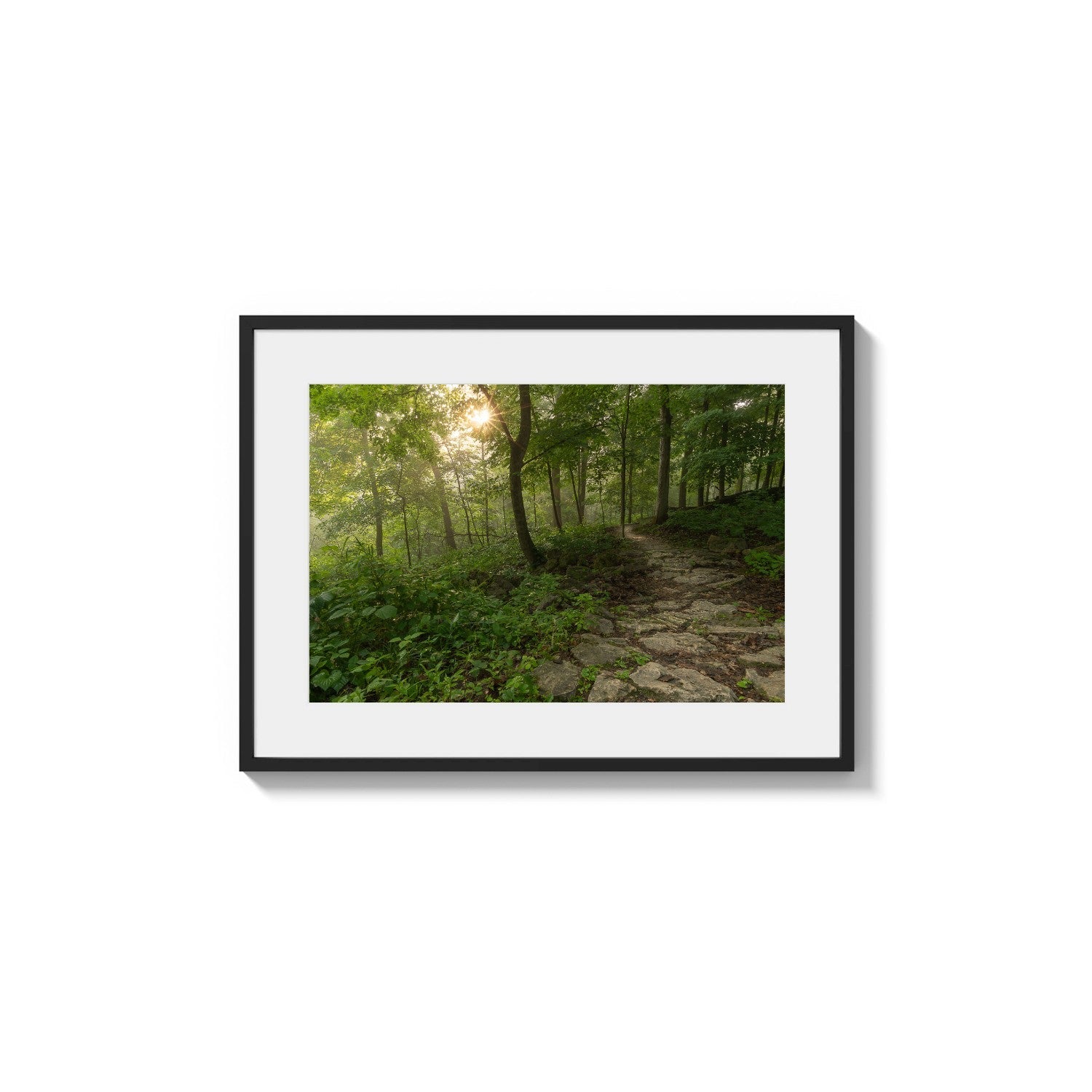 Keywords: nature photography, sylvan setting, stone walkway, ethereal atmosphere, dappled illumination, treescape, botanical, woods, rays, hiking, outdoor, lushness, natural park, vegetation, ephemeral
