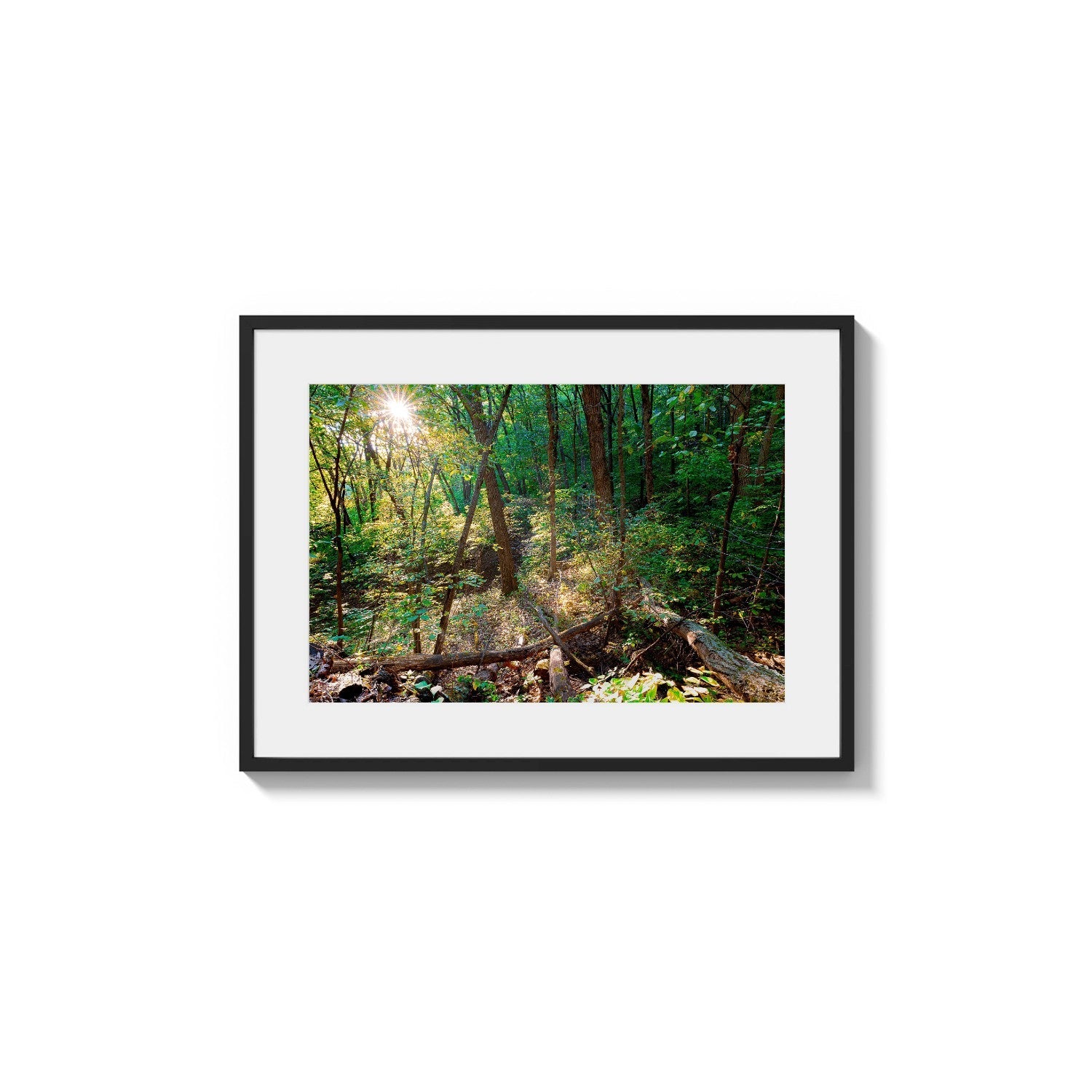 Keywords: Sunshine, woods, thicket, starburst, saturation, nature photography, dappled illumination, environment, trunks, verdant, high contrast